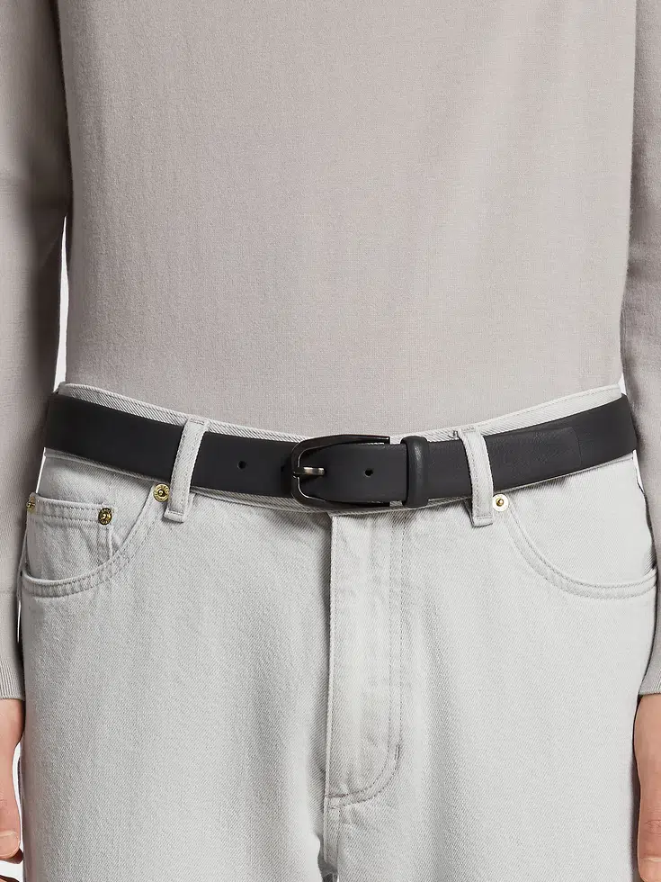 • Smooth calf leather• Metal buckle with black brushed PVD finish• Fixed belt• Tubular construction• Made in Italy• Width: 3.2 cm / 1.2 in