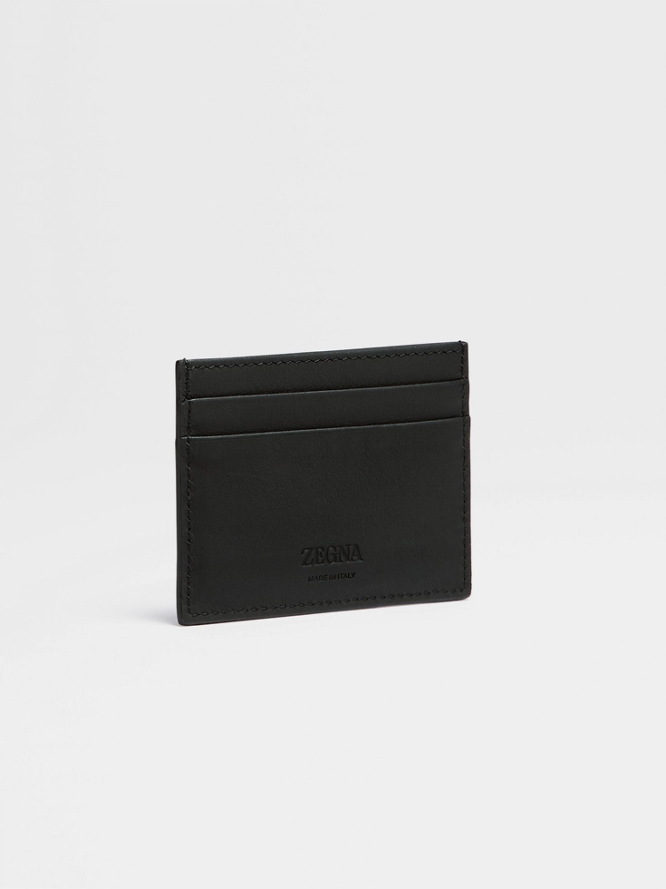 Versatile and functional, the black smooth leather simple card case’s minimalist design keeps all your cards organized. For a subtle accent, the smooth leather is paired with a matte black enamel finish and the Zegna 232 Road Brand Mark.