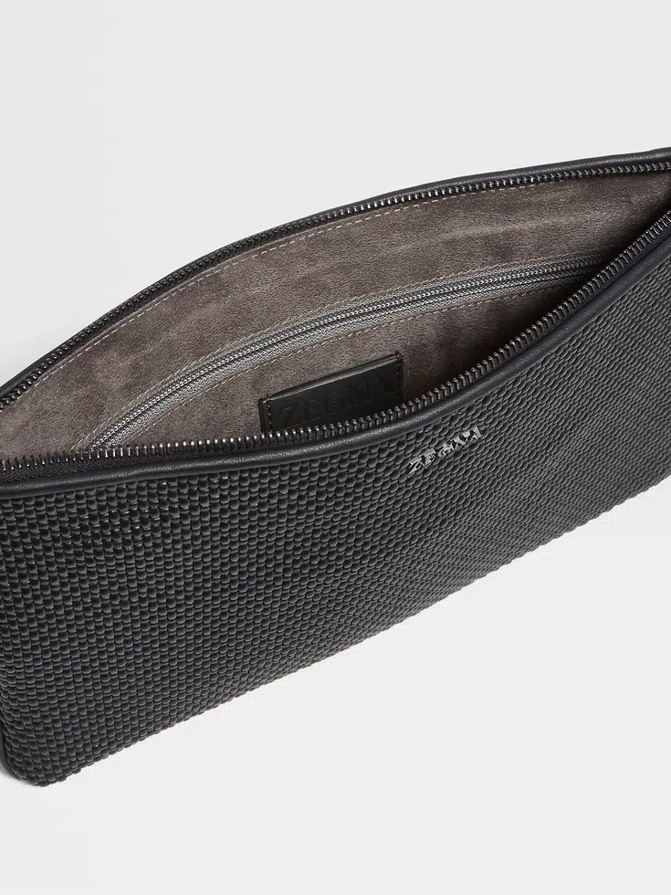 • Zip closure• Glazed ultrablack metal finish• Zegna Logo• Suede lining• 24 x 17 x 1 cm / 9.4 x 6.6 x 0.3 in • Made in Italy