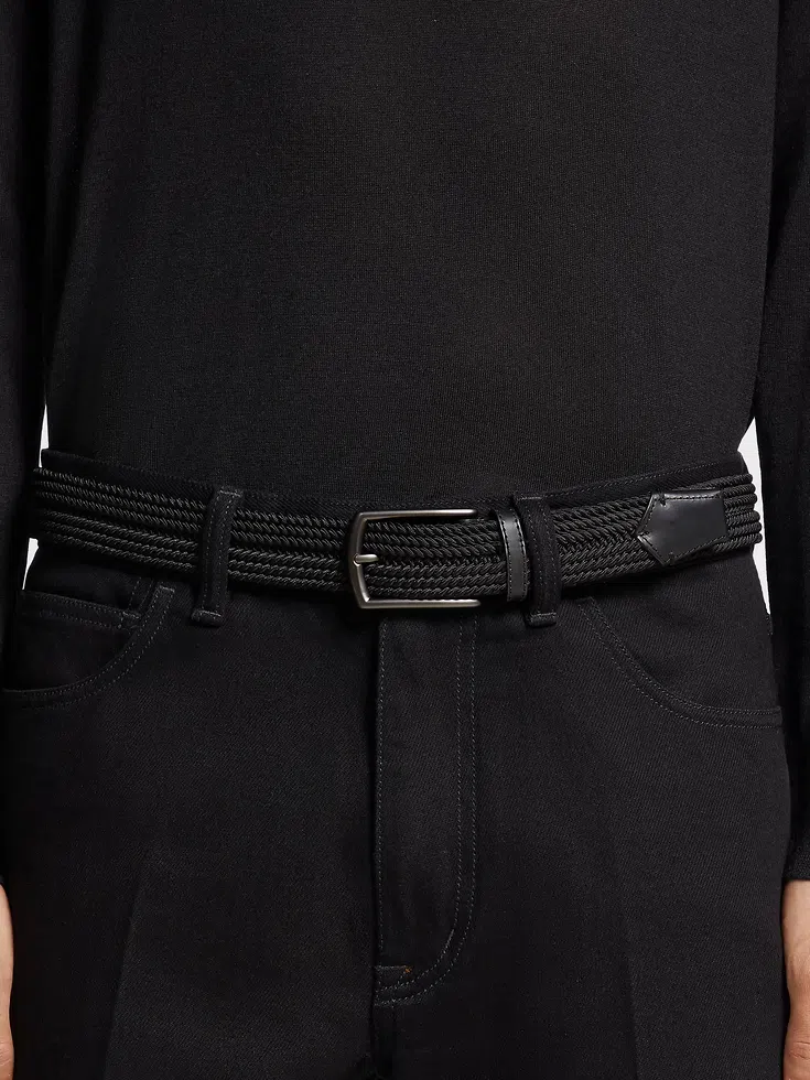 • Braided elastic rayon• Triple Stitch™ buckle• Glazed satin ultrablack finish• Fixed belt• Made in Italy• Width: 3.2 cm / 1.2 in