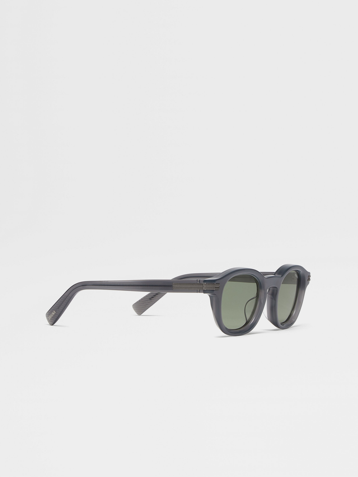 With a high-impact frame and a matte finish, the blue Aurora I acetate sunglasses deliver an instant boost of attitude. The stylish acetate frames are crafted with a single bridge to keep the look streamlined. Chiseled lines on the temple tips provide extra grip and improve the fit. The Zegna 232 Road Brand Mark in matte aniline on the corners completes the look.AURORA (ɔːˈrɔːrə) — ITALIAN FOR ‘SUNRISE’The inspiration for the Aurora I sunglasses was Born in Oasi Zegna — the home of our values in the Italian Alps. Capturing the essence of a new era at ZEGNA, they’re shaped to a classic silhouette that’s hallmarked with our contemporary ZEGNA logo and iconic 232 Road Brand Mark.