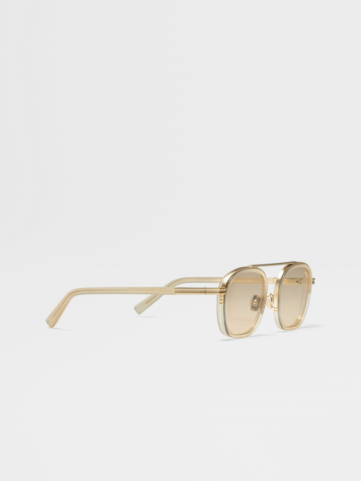 A raised bridge borrowed from classic aviators frames the transparent dark grey Orizzonte I acetate and metal sunglasses’ rounded lenses. The sunglasses are equipped with adjustable nose pads for a secure fit, featuring the Zegna Logo. The matte frames are embellished with chiseled lines on the temple tips and the matte aniline Zegna 232 Road Brand Mark on the corners.Perfect as a gift for those who appreciate style.ORIZZONTE (oridˈdzonte) — ITALIAN FOR ‘HORIZON’ The inspiration for the Orizzonte I Sunglasses was Born in Oasi Zegna — the home of our values in the Italian Alps. Shaped to a contemporary unbridged silhouette, they’re accented with our iconic 232 Road Brand Mark and ZEGNA logo, then finessed with a slender brow bar that draws from the panoramic mountain-top views in a 100km² natural territory.