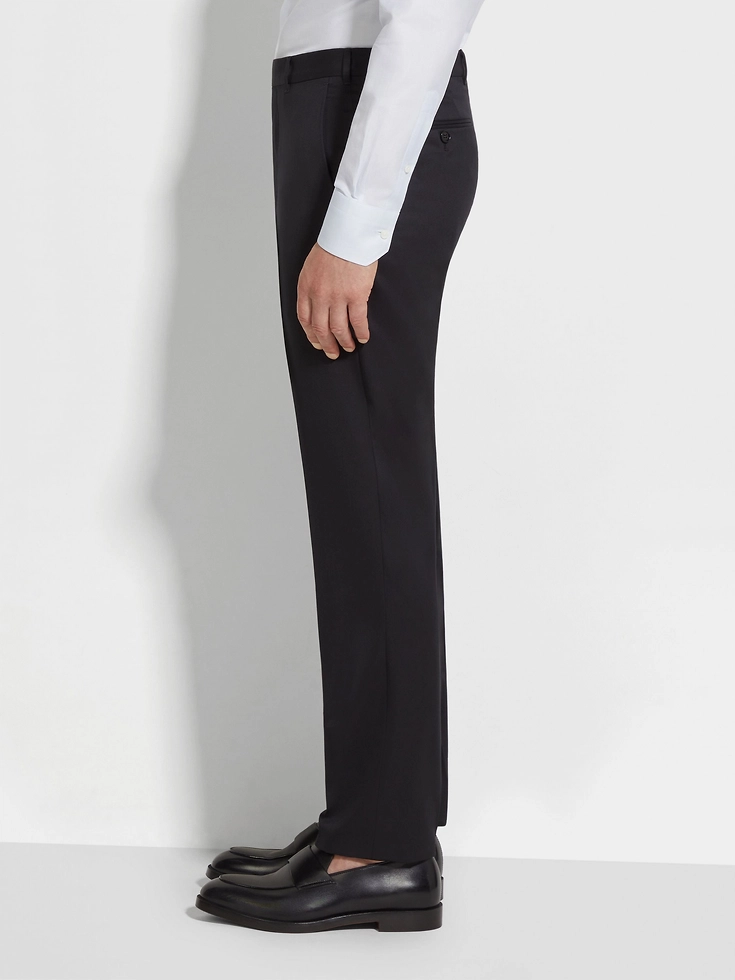 Fine tailoring with effortless attitude: these black pants are crafted from ZEGNA’s ultra-light wool Centoventimila fabric for a sublime drape and silky soft feel. Styled with a sleek flat-fronted silhouette and a slim leg.