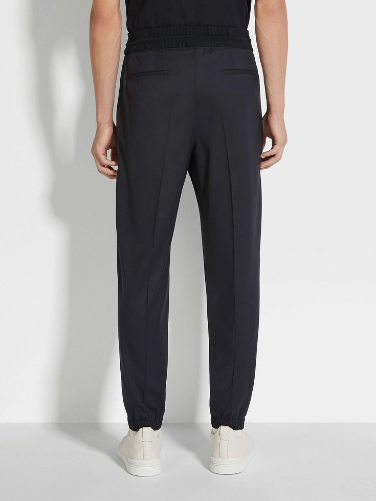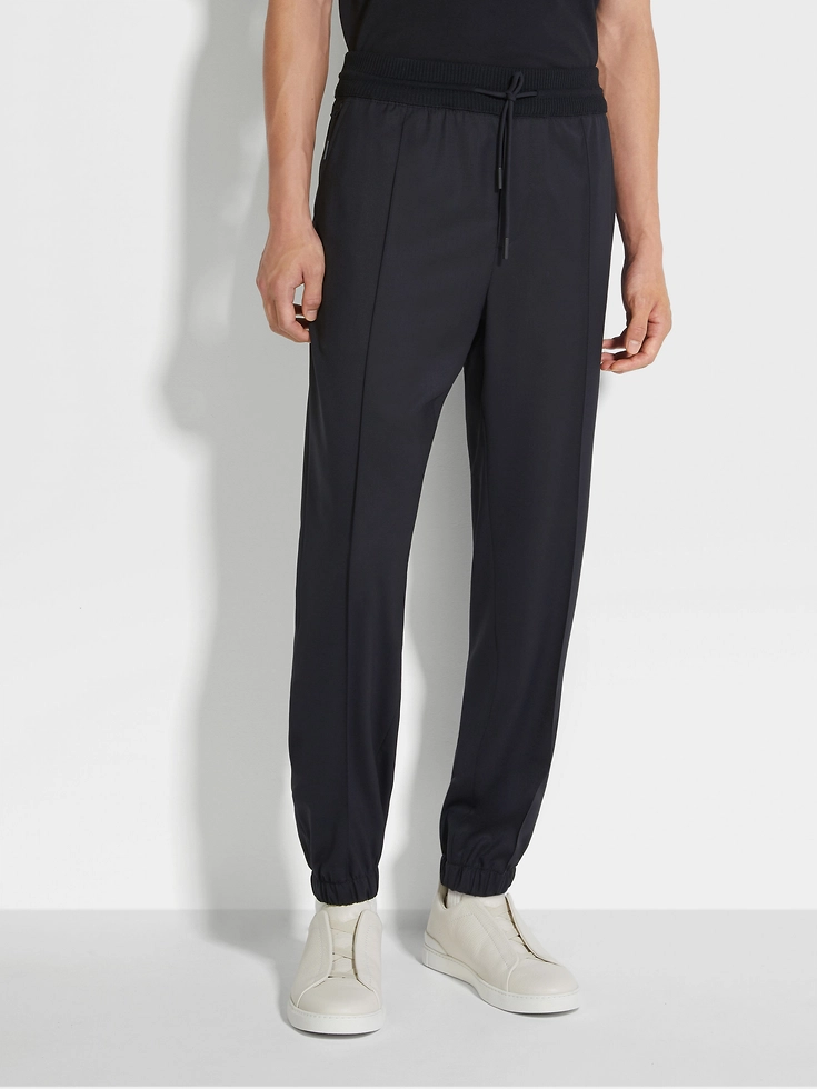 Zegna’s black High Performance™ wool joggers are soft and breathable, offering exceptional comfort throughout the day. The classic colorway keeps the look sleek. The joggers are equipped with a knit belt, while leather details add a final touch of style.