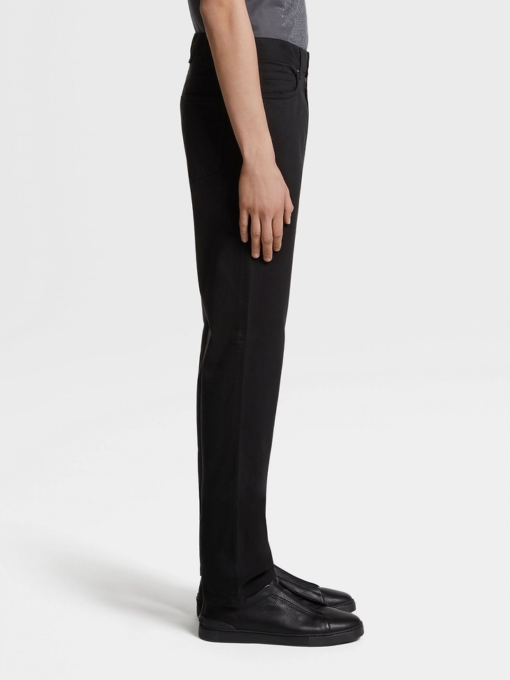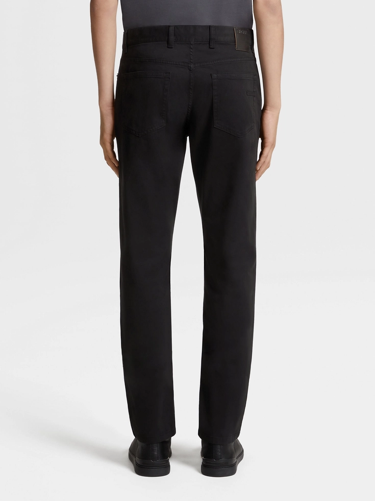 Stretch cotton gabardine gives this classic pair of black Roccia jeans an extra smooth finish. The straight fit transitions easily from weekends to casual meetings, ideal for fast-paced contemporary lifestyles.The inspiration for the Roccia Jeans, Roccia the Italian word for ‘Rock’, was Born in Oasi Zegna — the home of our values in the Italian Alps. Inspired by classic workwear, they’re both hardwearing and elegant, making them a reliable foundation to any look.