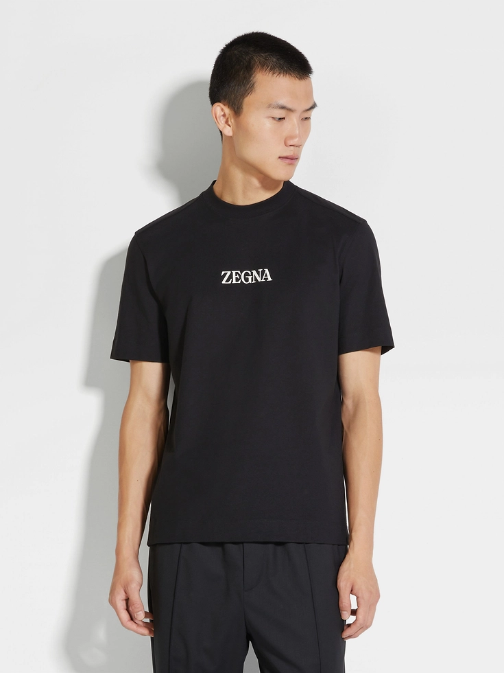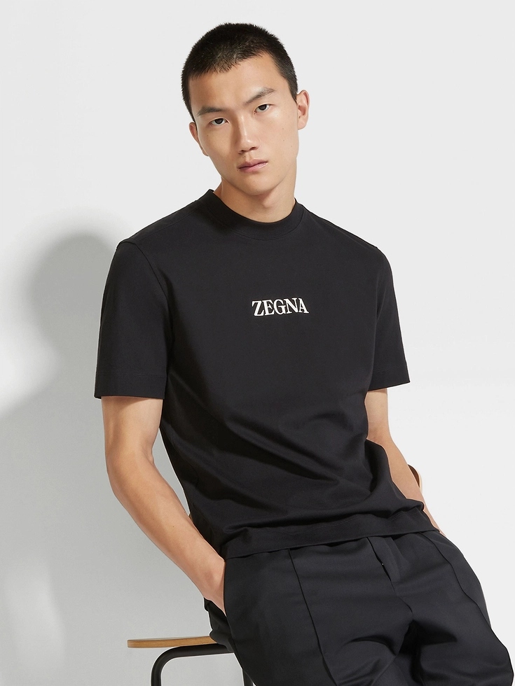 Reflecting Zegna’s commitment to zero-waste fashion, the black #UseTheExisting™ cotton T-shirt is made using sustainable upcycling processes. Folded cuffs give the pure cotton, short-sleeve T-shirt an extra boost of style. The Zegna Logo adds a final accent.