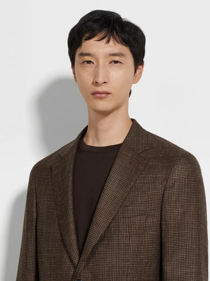 Brown and Dark Brown Cashmere Silk and Linen Jacket