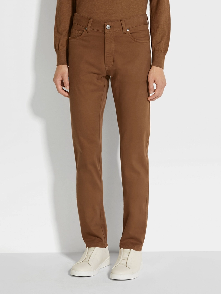 Comfortable and versatile, the Dark Foliage stretch cotton Roccia jeans fit right into elegant contemporary wardrobes. The slim fit elongates the legs, in line with Zegna’s vision of dynamic, contemporary menswear.ROCCIA (‘rɔt:ʃa) — ITALIAN FOR ‘ROCK’ The inspiration for the Roccia Trousers was Born in Oasi Zegna — the home of our values in the Italian Alps. Inspired by classic workwear, they’re both hardwearing and elegant, making them a reliable foundation to any look.