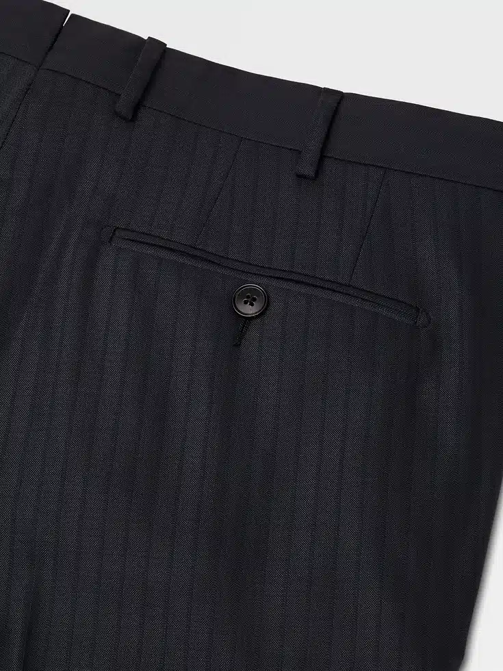 • Regular fit• Drop 7• Tailoring suit• Double vents• Notch lapels• Pinstriped pattern• Button closure• Flap pockets• Deconstructed, canvas• Lined• 73.5 cm length on size 48• Flat front pants, 18.5 cm hem