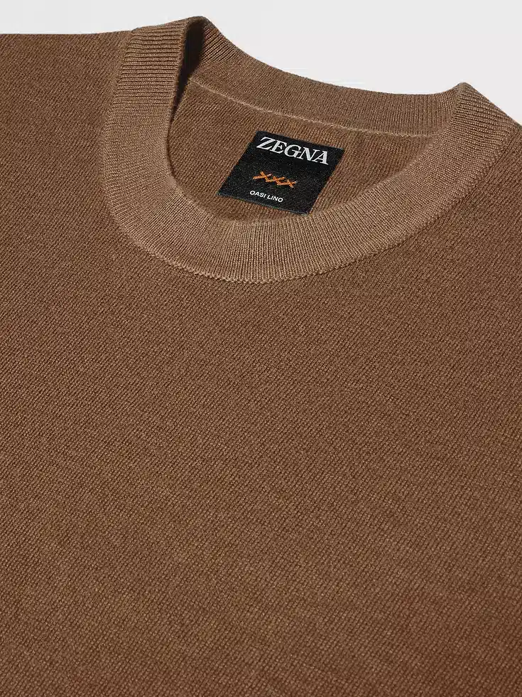 The natural texture of pure linen elevates a timeless casualwear staple to luxury status with this crewneck T-shirt, crafted from Zegna’s Oasi Lino fabric. Presented in a sophisticated dark taupe hue and edged with ribbed trims for a streamlined finish.