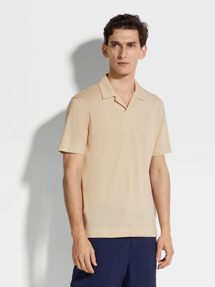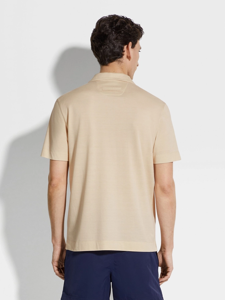 Sophisticated details put a fresh twist on a classic style: the light beige silk and cotton piquet polo shirt is made from an elegant blend of lightweight, natural fibers and framed with folded trim. The short-sleeve polo shirt’s open collar is effortlessly chic. On the back, the Zegna 232 Road Brand Mark signs off the look in the form of a self-fabric loop.