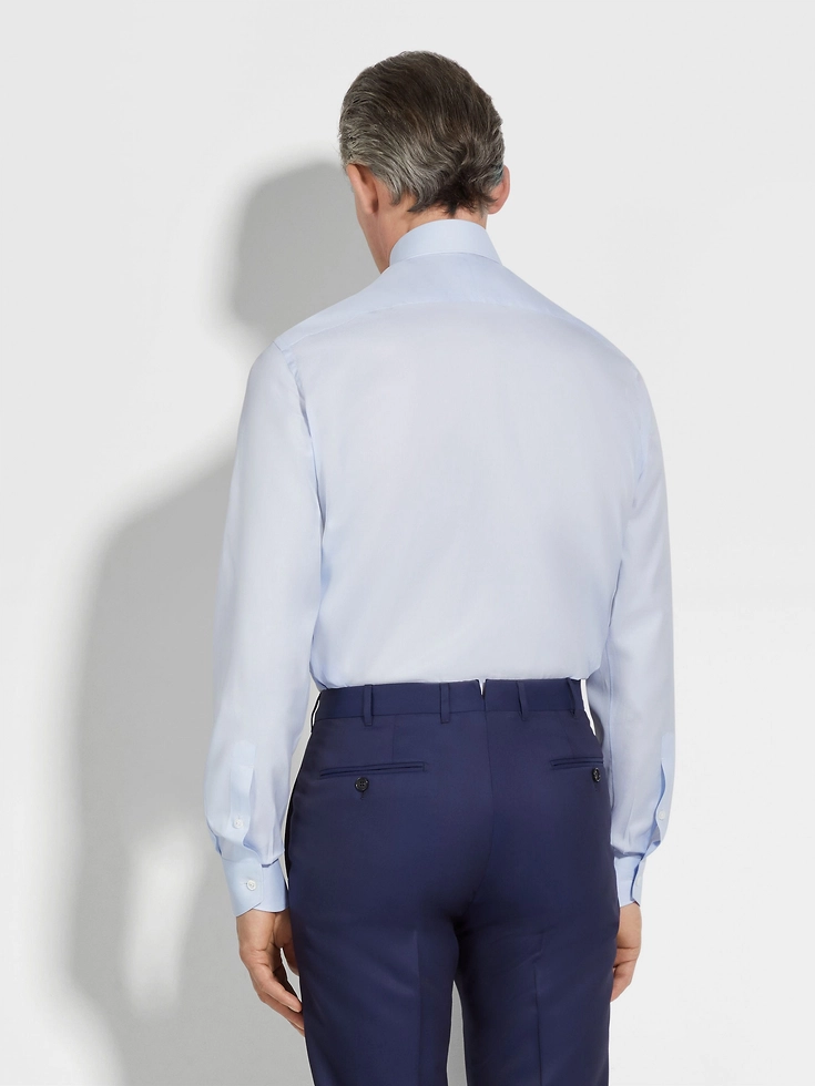 This elegant long-sleeve shirt is made from ZEGNA’s 300 Cotton: an exquisite fabric that can stand up to any formal occasion. Featuring a light blue and white micro-checked pattern, it features a spread collar and standard cuffs for timeless sartorial allure.