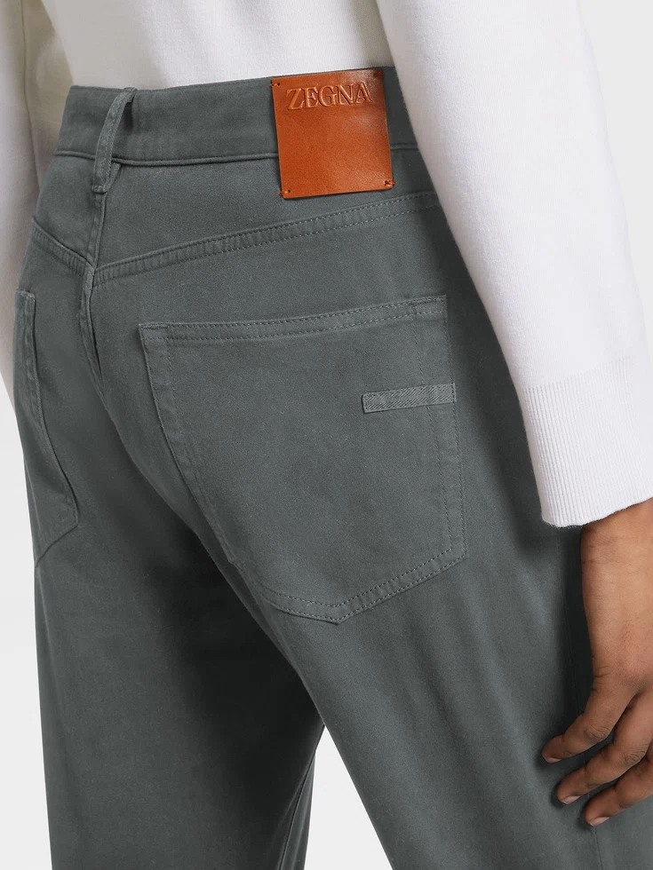 Stretch cotton gabardine gives this classic pair of light grey Roccia jeans an extra smooth finish. The straight fit transitions easily from weekends to casual meetings, ideal for fast-paced contemporary lifestyles.The inspiration for the Roccia Jeans, Roccia the Italian word for ‘Rock’, was Born in Oasi Zegna — the home of our values in the Italian Alps. Inspired by classic workwear, they’re both hardwearing and elegant, making them a reliable foundation to any look.