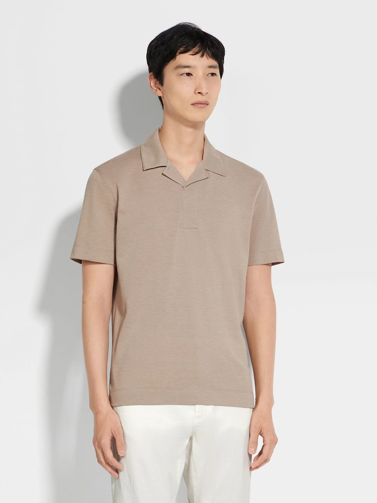 Light Taupe Silk and Cotton Piquet Polo Shirt