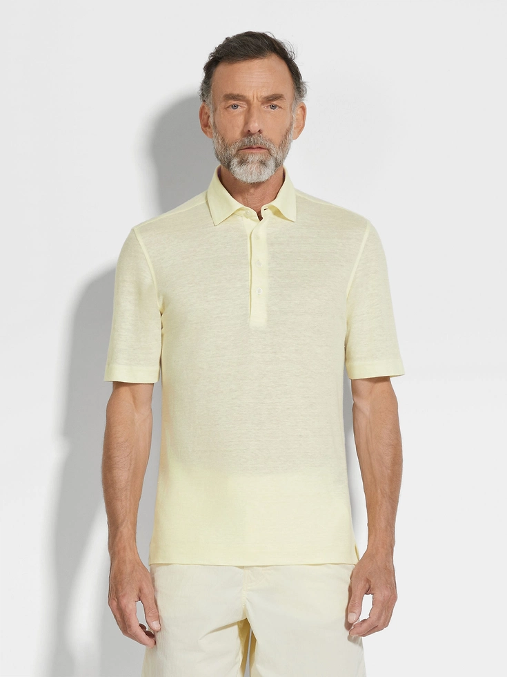 This light yellow Oasi Lino polo shirt continues Zegna’s legacy of laid-back luxury, elevating a sporty short-sleeved silhouette with the refined allure of pure, fully traceable linen fibers. Folded trims and a tonal collar complete the design for a streamlined look.