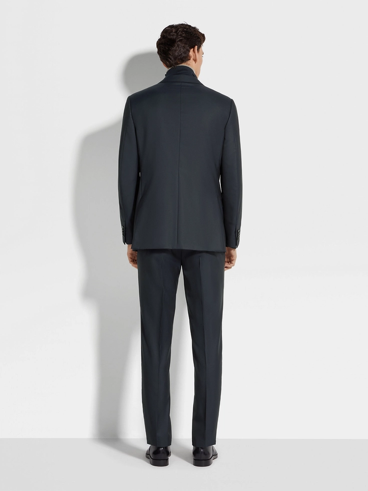 Zegna’s proprietary, 15.2-micron yarn gives the navy blue 15milmil15 wool suit its luxuriously soft finish. This incredibly soft material accentuates the deep colorway. This suit is fully lined, pairing a jacket with notch lapels and flap pockets with dart-stitched pants.