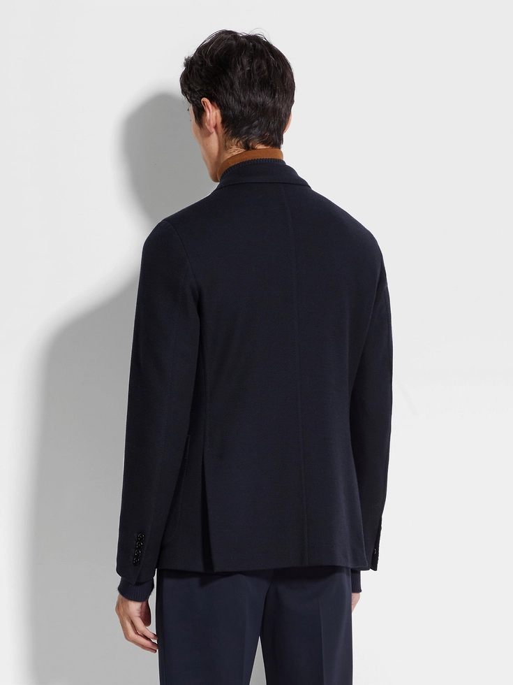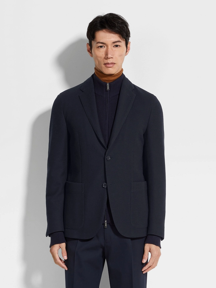 Showcasing Zegna’s expertise in innovative materials, the navy blue High Performance™ Jersey jacket’s lightweight material is enhanced with a honeycomb texture. The slim fit jacket can be folded up for effortless style wherever your travels take you.