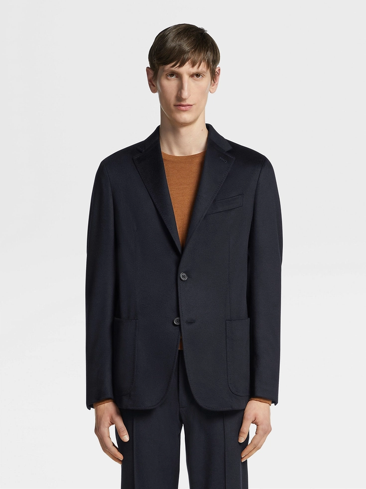 Crafted from one of the brand’s most exclusive yarns, the navy blue Oasi Cashmere shirt jacket shows how special materials can transform a familiar silhouette. The shirt jacket is exceptionally soft and smooth to the touch, with leather accents for subtle contrast. The understated look is completed with patch pockets.