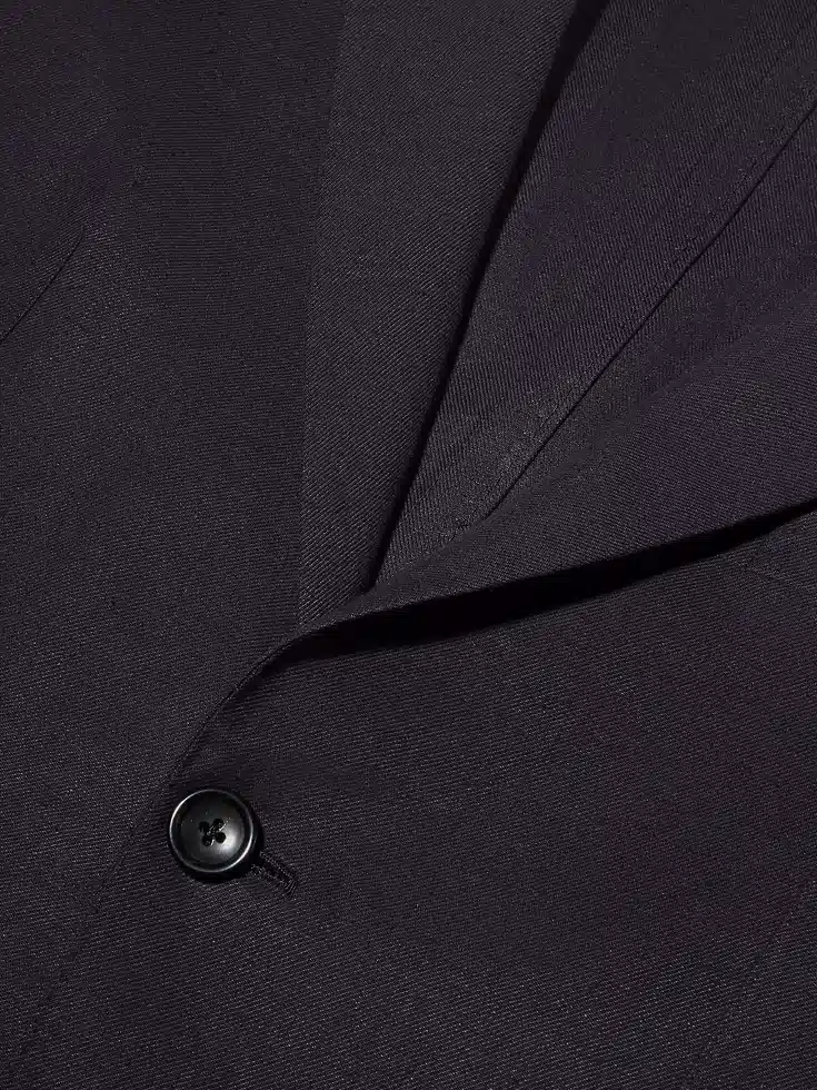 This navy blue cardigan jacket showcases the exquisite frosted effect of Zegna’s Oasi Lino Blue Flower fabric, spun from super-fine fibers that are also fully traceable. Left unlined, it’s styled with sleek notch lapels.