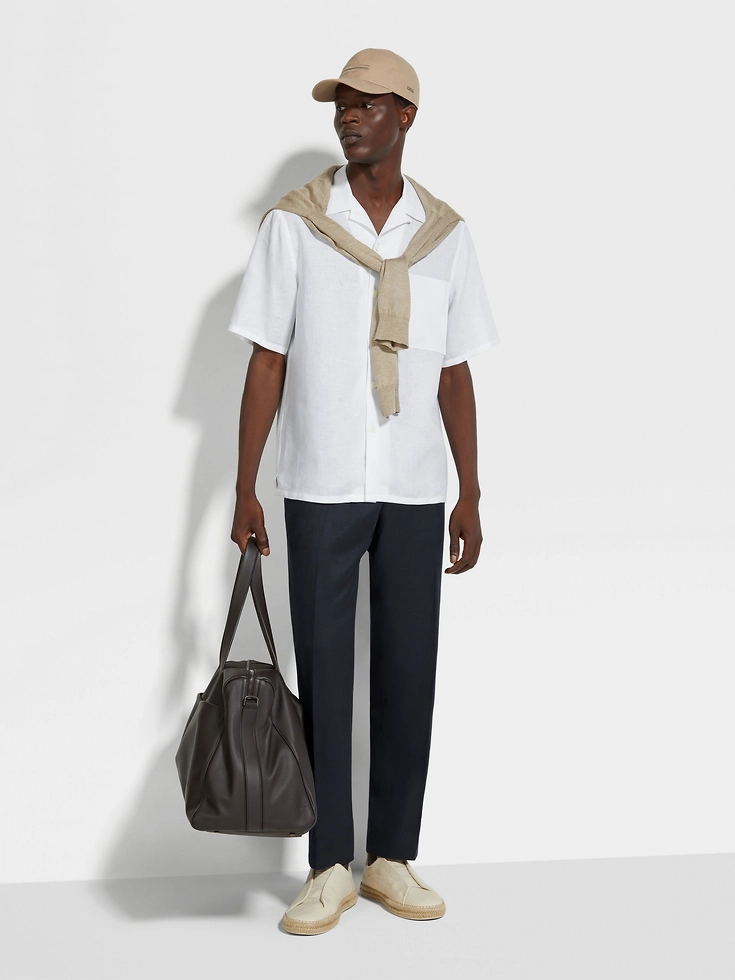 Main body: 100% LinenLining: 100% CuproThe inspiration behind this Oasi Lino garment was Born in Oasi Zegna, a 100km² natural territory and the home of our values. Crafted from European-grown flax fibres that are certified as 100% traceable from 2024, Oasi Lino follows in the footsteps of our founder, who envisioned a vertically integrated system of producing textiles.Do not wash. Do not bleach. Do not tumble dry. Iron at max 110° C. Professional dry cleaning in hydrocarbons, mild process. Wash inside out.