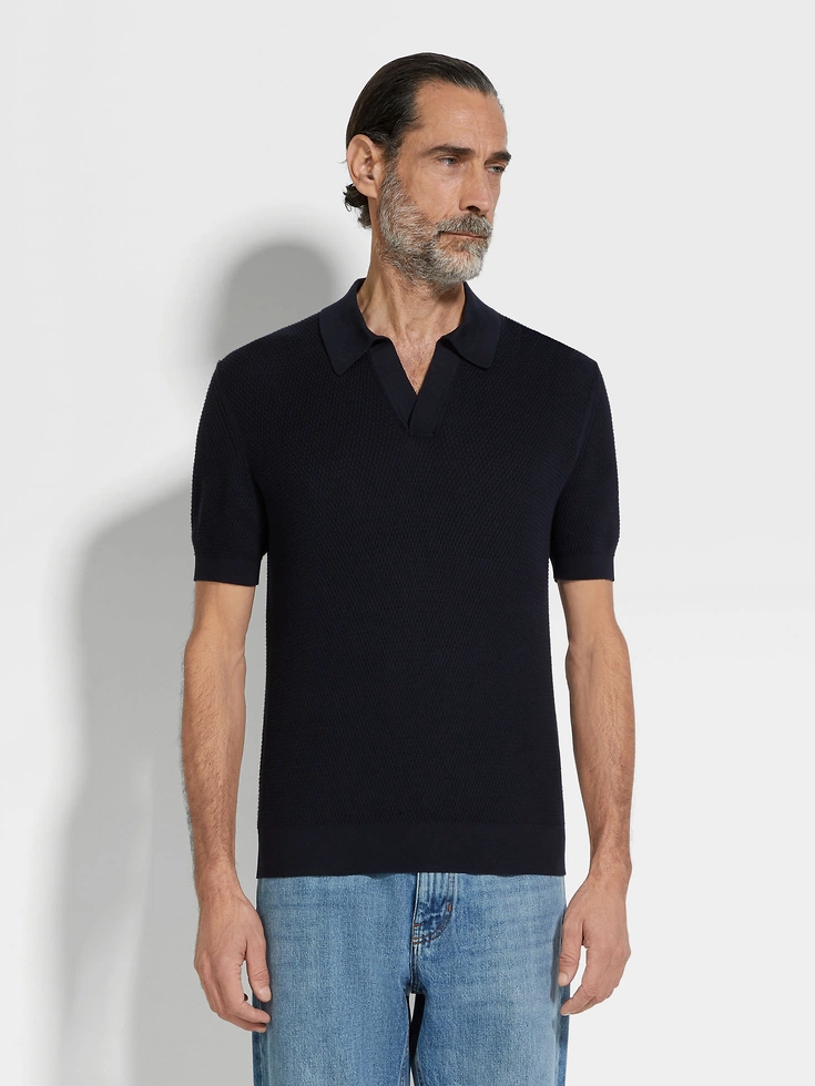 Embrace elevated leisurewear in this navy blue polo shirt, crafted from ZEGNA’s exclusive Premium Cotton for unwavering elegance wear after wear. An open polo collar lends relaxed charm to its classic short-sleeve silhouette.