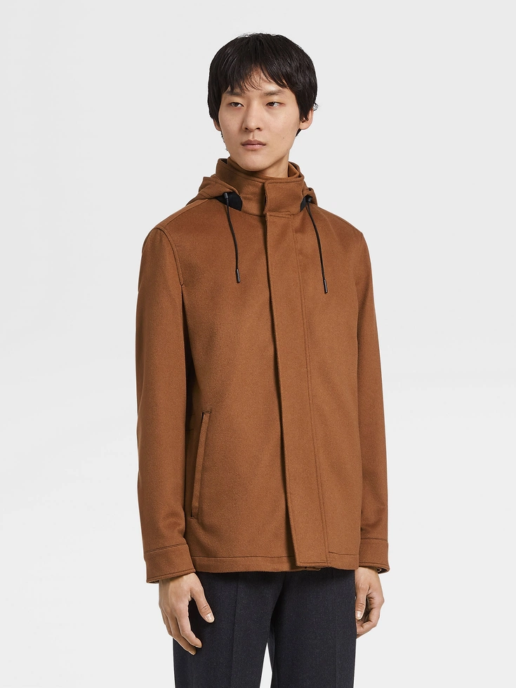 Showcasing Zegna’s uncompromising approach to natural materials, the Foliage-colored Oasi Cashmere hooded Cima overjacket continues a tradition of luxury outerwear. Soft, lightweight cashmere and the rich colorway transform the casual silhouette into a luxurious statement piece. Leather details add a final touch of style.The inspiration for the Cima Jacket, Cima the Italian word for ‘Summit’, was Born in Oasi Zegna — the home of our values in the Italian Alps. It’s crafted from Oasi Cashmere fibres, which ZEGNA commits to certifying as traceable from 2024. The pinnacle of our outdoor-ready offering, wear it for warmth during revitalising hikes.