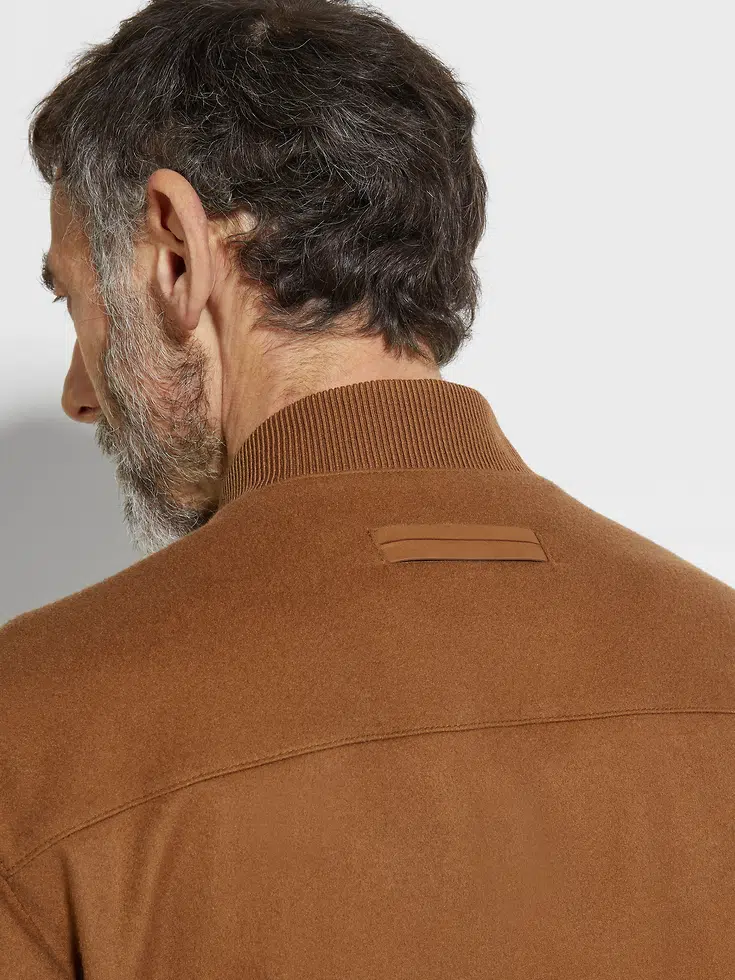 Zegna’s exclusive, extra-fine cashmere is slightly felted to give the Dark Foliage Oasi Cashmere Elements bomber its beautifully textured finish. The jacket is equipped with a water-repellent membrane that preserves these qualities while adding even more protection. This sporty design is finished off with a ribbed bomber collar and ribbed cuffs to match.