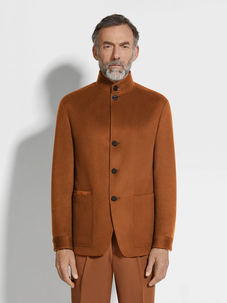 The Dark Foliage Oasi Cashmere Il Conte chore jacket’s rich colorway brings out the best of this luxuriously smooth fabric. This functional, versatile design is topped off with a standing collar. A leather mini pocket on the right side and the leather Zegna 232 Road Brand Mark on the back sign off the look.Il Conte jacket pays homage to our Founder, Ermenegildo Zegna. He was bestowed the noble title of Count of Monte Rubello for the legacy he created as an entrepreneur, philanthropist and businessman.