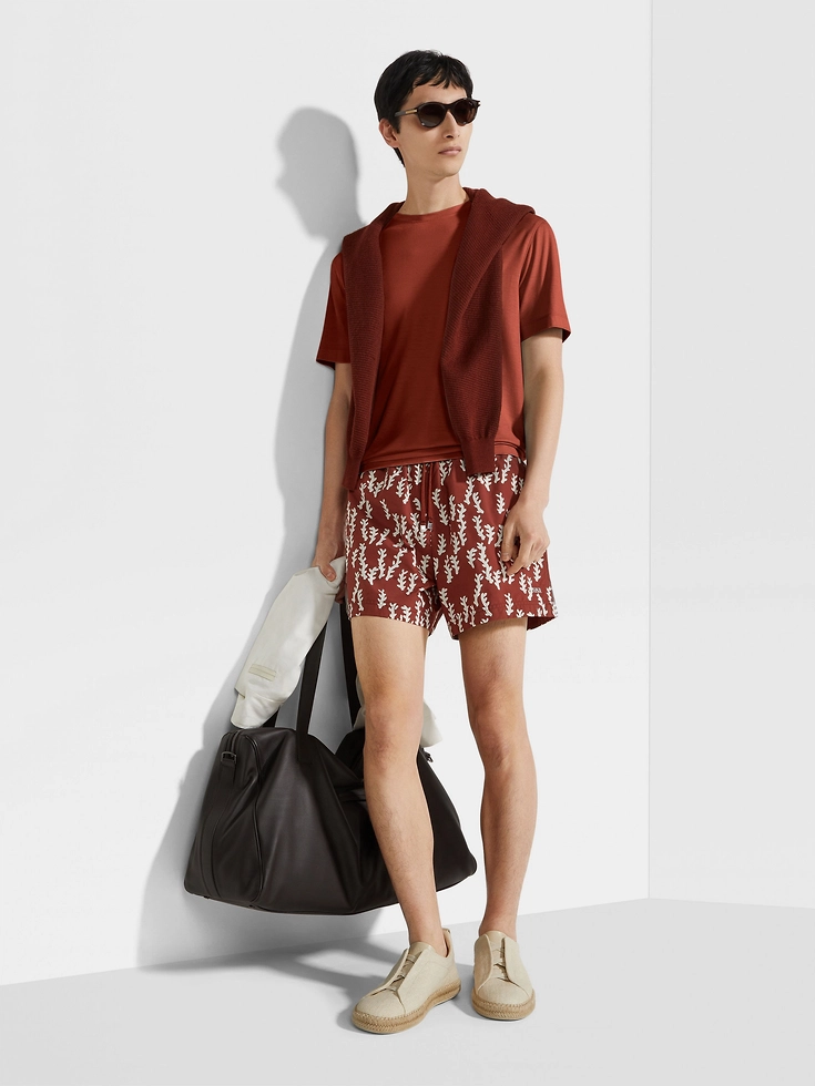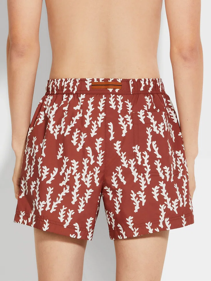 Made from soft quick-dry fabric, these red swim shorts bring a dynamic touch to your beachwear edit with their Oasi print. Embellished with an embroidered ZEGNA Logo and ZEGNA Logo on the hardware.