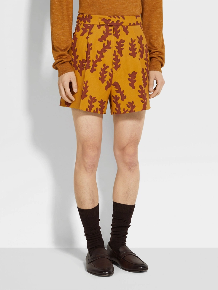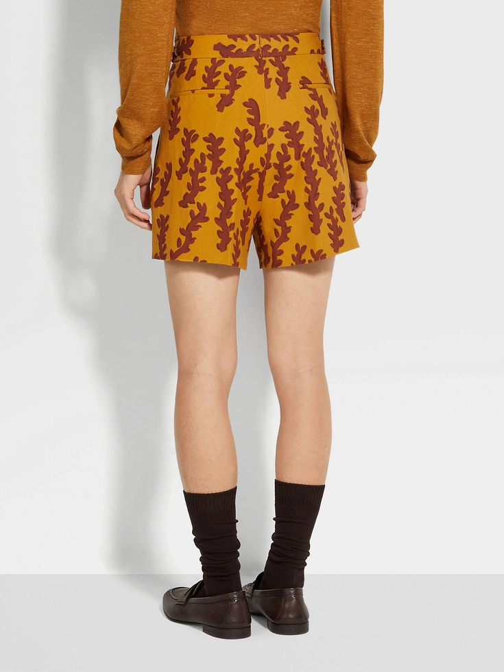 Crafted from fully traceable pure linen, ZEGNA’s exclusive Oasi Lino fabric provides a sublime backdrop for our Oasi print in a charming ochre and brick red palette: as seen in the ZEGNA Fashion Show, these single-pleat shorts are elevated with side adjusters, in-seam pockets and a rear cut for a refined sartorial finish.