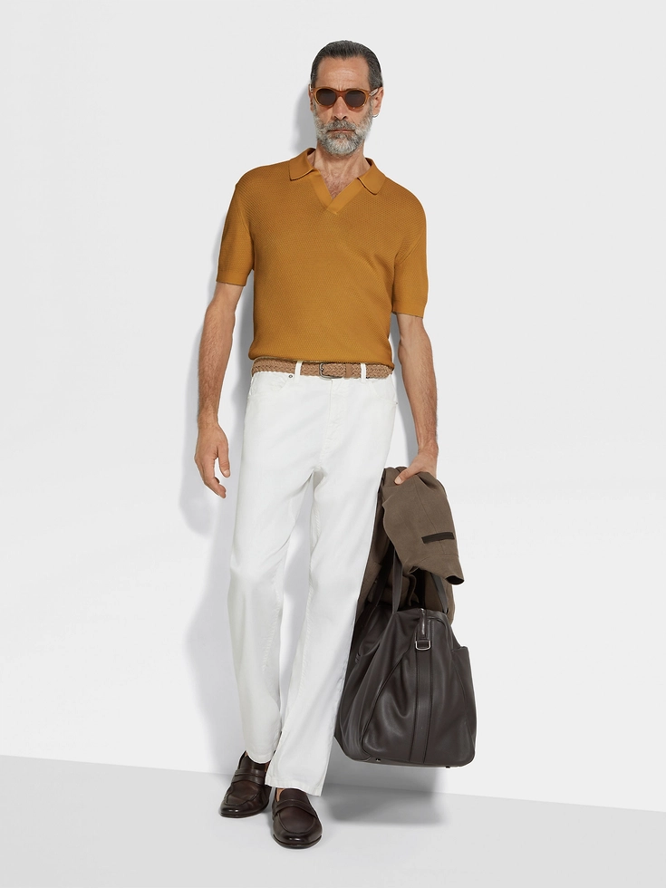 Embrace elevated leisurewear in this ochre polo shirt, crafted from ZEGNA’s exclusive Premium Cotton for unwavering elegance wear after wear. An open polo collar lends relaxed charm to its classic short-sleeve silhouette.