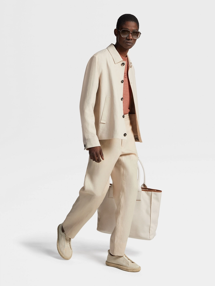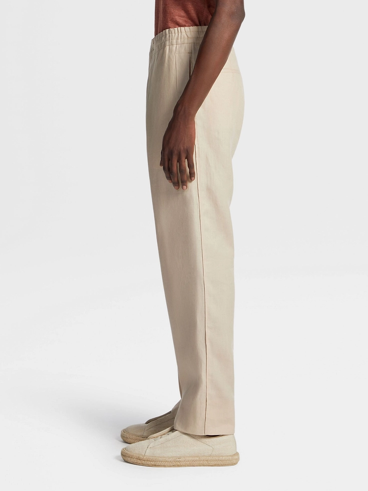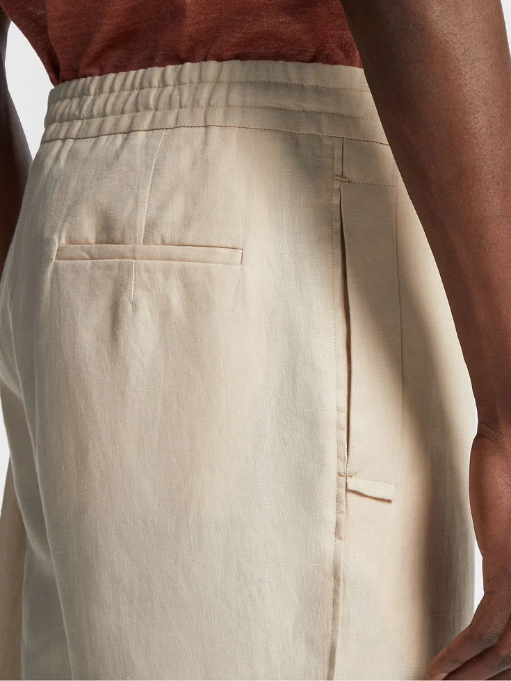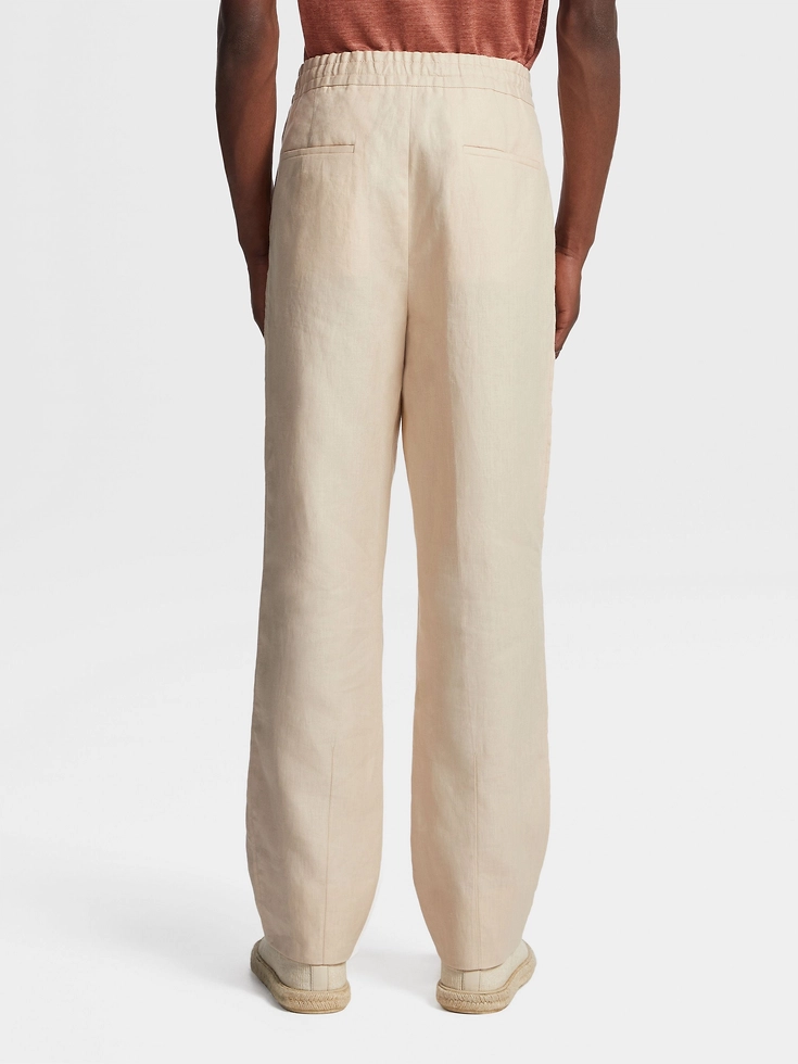 Styled with a zip closure, the off white pure linen joggers are distinguished by the refined choice of natural materials. Fresh, lightweight linen is breathable and soft against the skin, instantly elevating this casual favorite. An inner drawstring ensures the perfect fit.