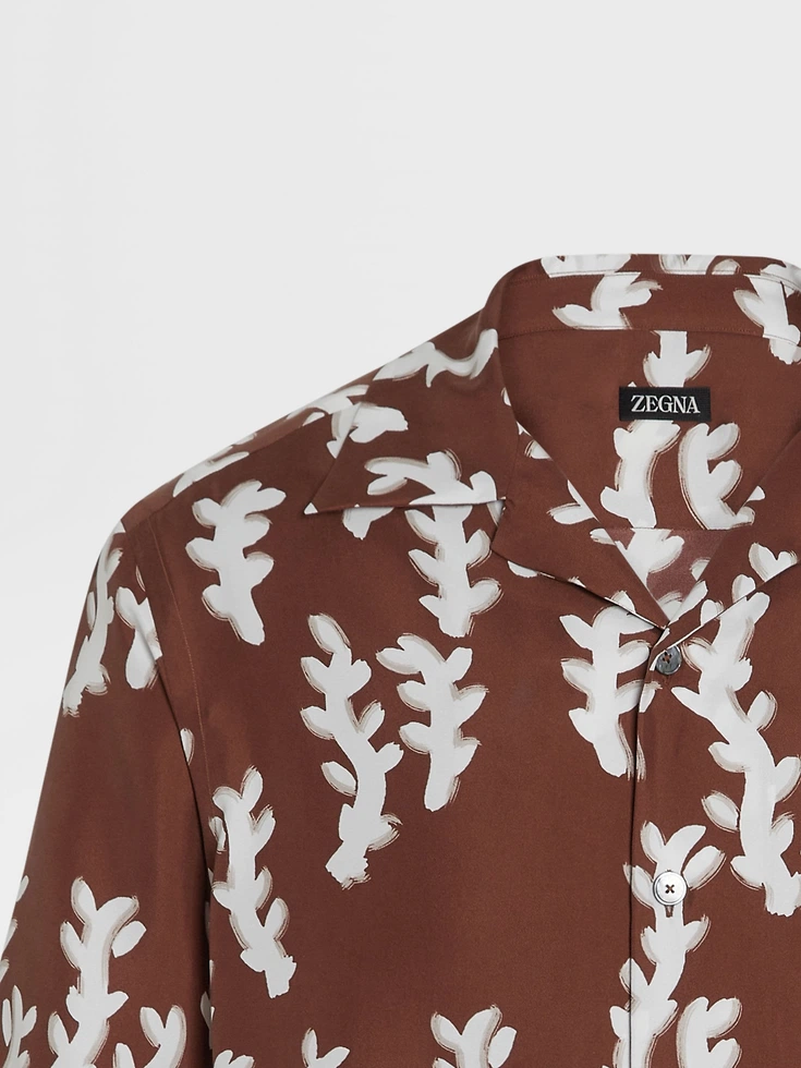 Embrace the refined elegance of mulberry silk with this short-sleeved shirt. Zegna’s distinctive Oasi print in brick red and white brings its relaxed silhouette to life, styled with a Cuban collar and straight hem.