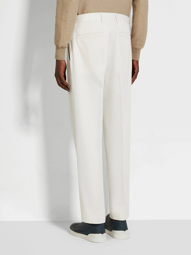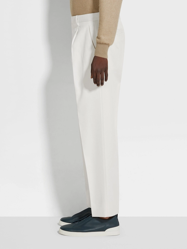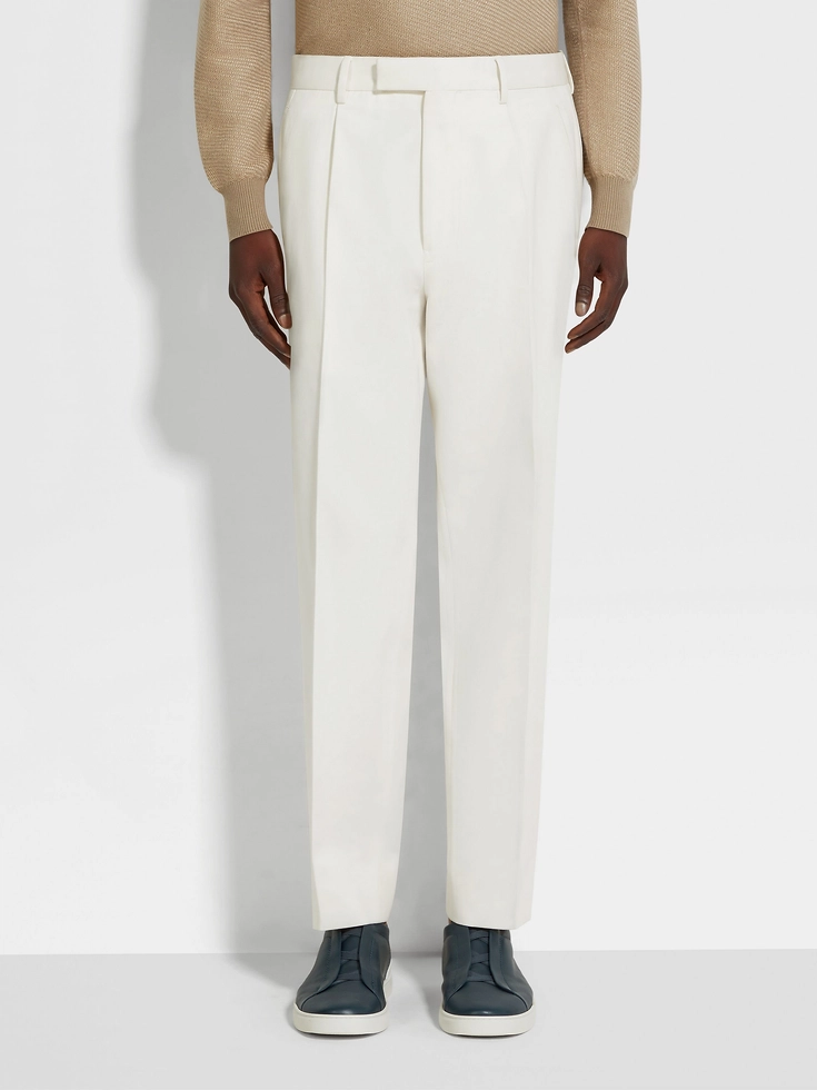 Cut from a refined cotton and wool blend, these white pants are the ultimate example of quiet luxury. Single front pleats elevate the silhouette with a beautiful drape, bringing classic elegance to formal ensembles.