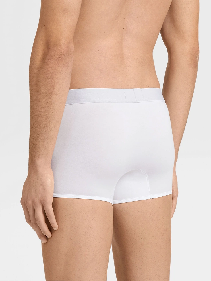 White cotton trunks are soft, breathable, and perfect for everyday wear. This pair is finished off with a black and Foliage band on the elastic waistband, connecting the trunks to the rest of the collection.