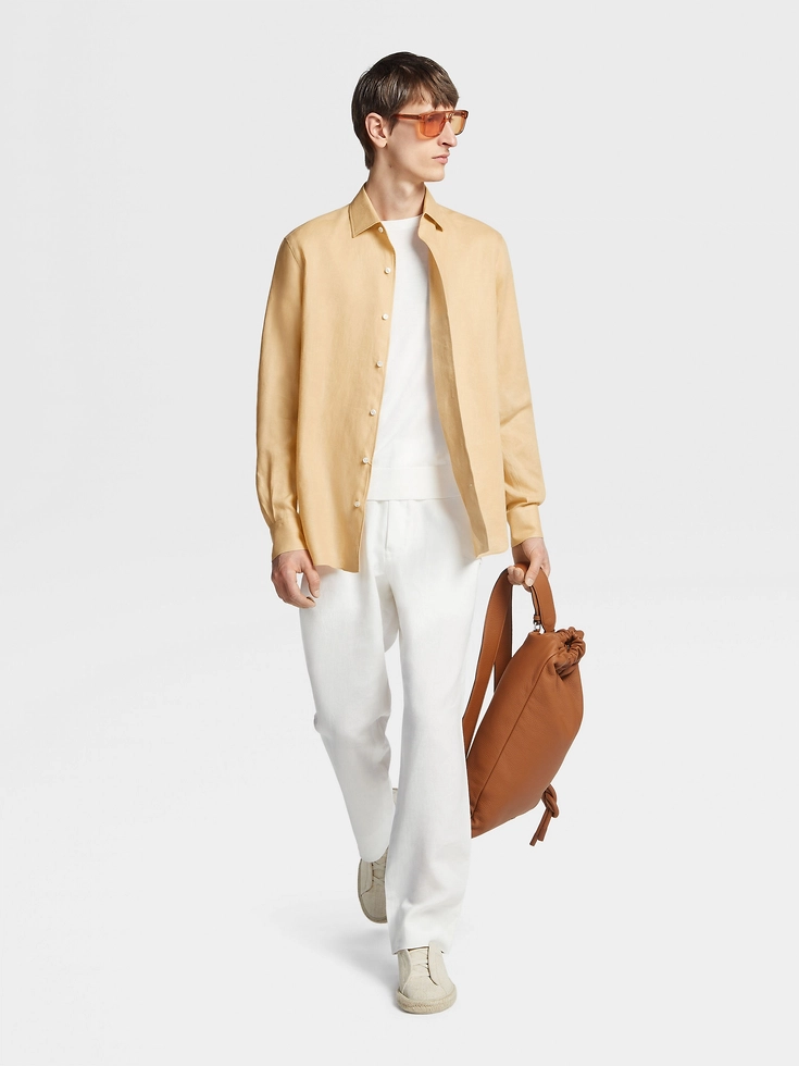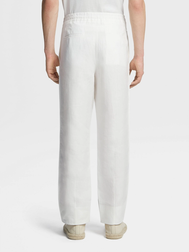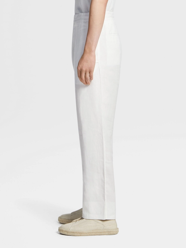 Styled with a zip closure, the white pure linen joggers are distinguished by the refined choice of natural materials. Fresh, lightweight linen is breathable and soft against the skin, instantly elevating this casual favorite. An inner drawstring ensures the perfect fit.
