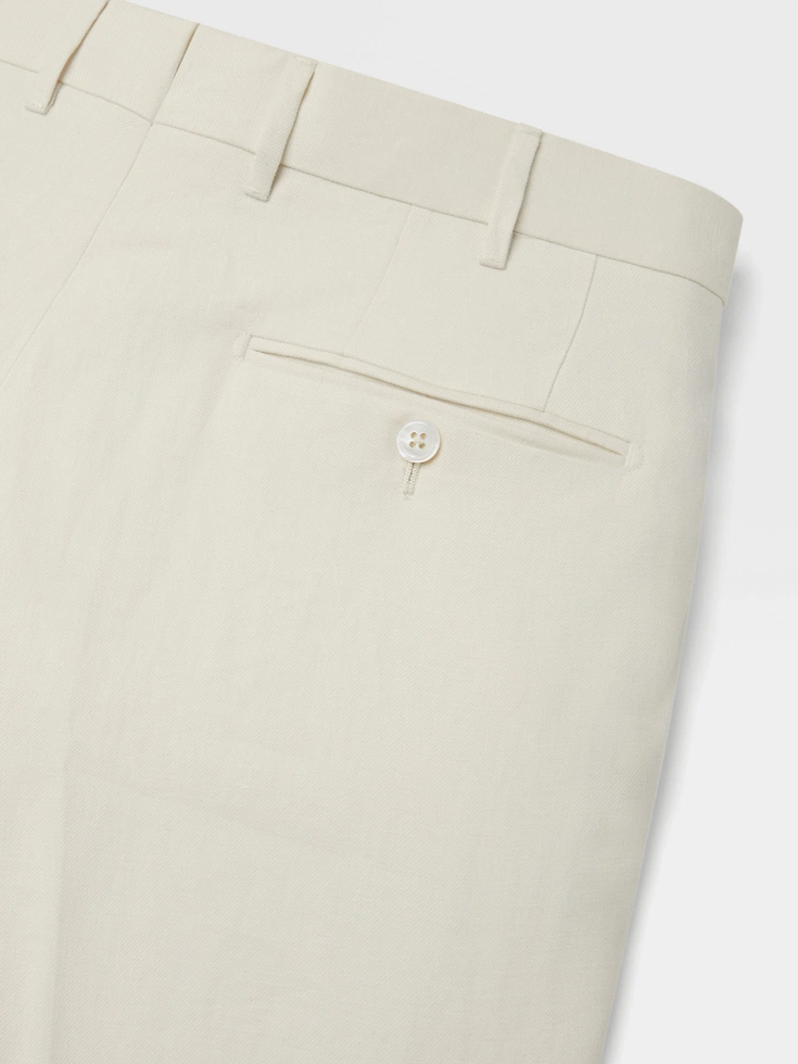 Choose sartorial perfection with these pants, elevating a crisp white colorway with the subtle frosting of Zegna’s Oasi Lino Blue Flower fabric. Their flat-fronted silhouette promises a sleek look, elevated with slanted pockets.
