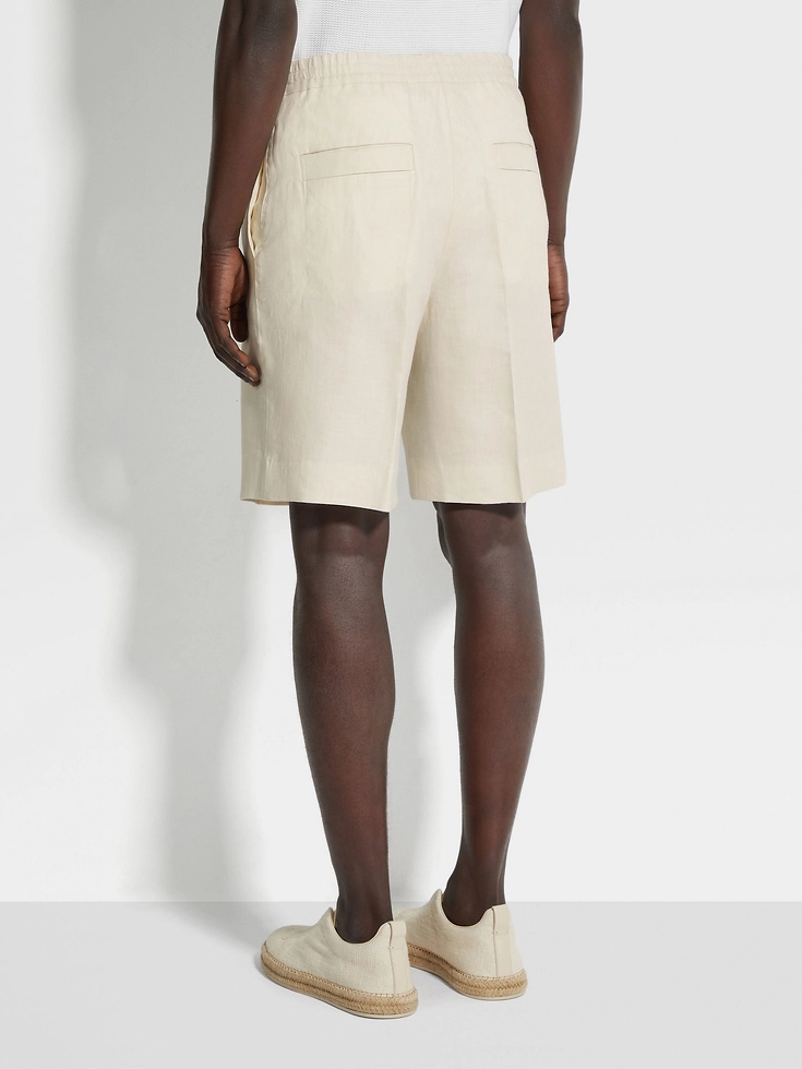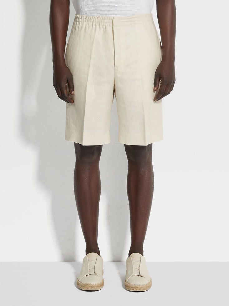The white Oasi Lino shorts are woven from European-grown flax fibers as part of Zegna’s commitment to sustainable, traceable production methods. This naturally lightweight, breathable material has long been a staple of classic summertime style. The linen shorts are half-lined and feature an elasticated, drawstring waistband.
