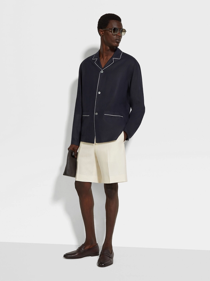 Main body: 100% LinenLining: 100% CuproThe inspiration behind this Oasi Lino garment was Born in Oasi Zegna, a 100km² natural territory and the home of our values. Crafted from European-grown flax fibres that are certified as 100% traceable from 2024, Oasi Lino follows in the footsteps of our founder, who envisioned a vertically integrated system of producing textiles.Do not wash. Do not bleach. Do not tumble dry. Iron at max 110° C. Professional dry cleaning in hydrocarbons, mild process. Wash inside out.