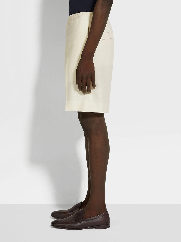 Elevate warm-weather ensembles with the natural charm of pure linen in these white shorts, crafted from Zegna’s exclusive Oasi Lino fabric. Styled with a comfortable elasticated waistband with inner drawstring and back flap pockets.