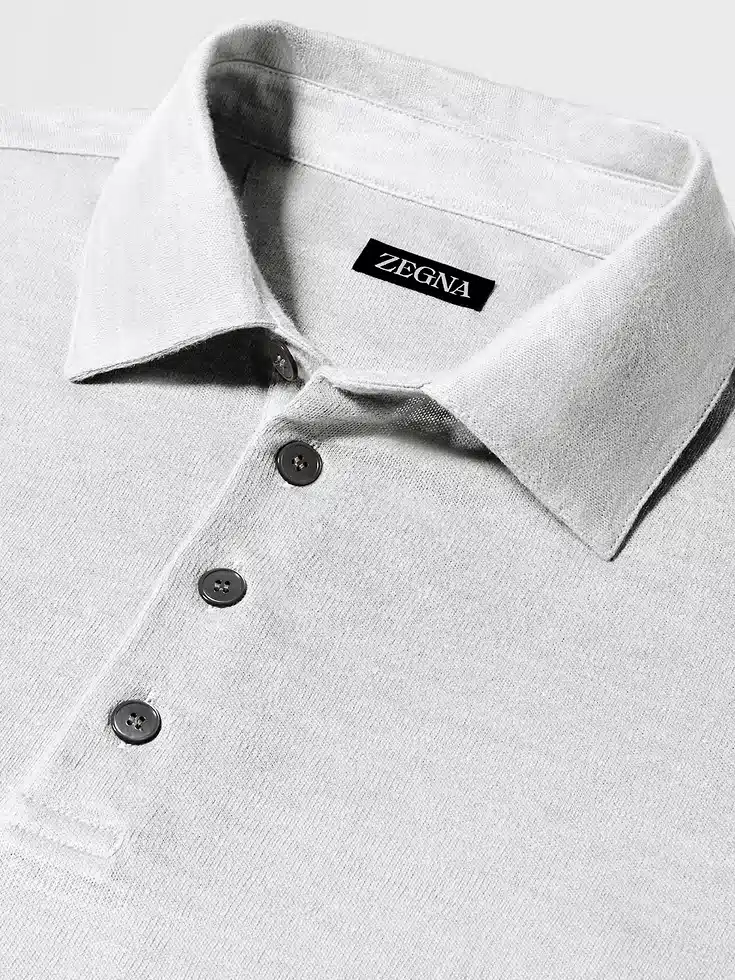 • Short sleeves• Self fabric polo collar• Straight bottom• Folded sleeve hems• Button placket• Regular fit• Flat-fell seam on sides and armholes• Invisible stitches in the cuffs and hem• Handmade details• Yarn-dyed• Sartorial Zegna 232 Road Brand Mark on the back