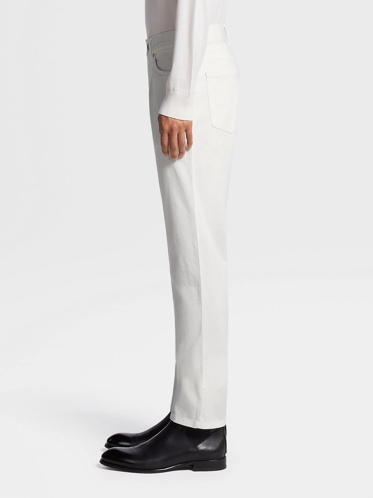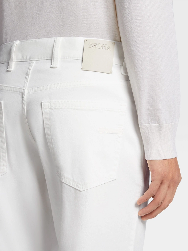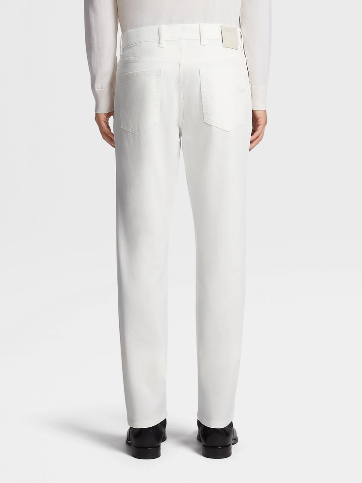The smooth finish of the garment-dyed white gabardine turns these Roccia jeans into an elegant choice of casual wear. Styled with a classic, straight fit, these jeans are the perfect foundation for crisp, contemporary looks.The inspiration for the Roccia Jeans, Roccia the Italian word for ‘Rock’, was Born in Oasi Zegna — the home of our values in the Italian Alps. Inspired by classic workwear, they’re both hardwearing and elegant, making them a reliable foundation to any look.