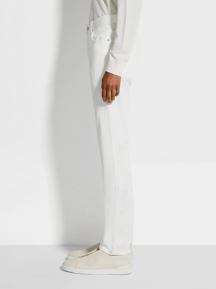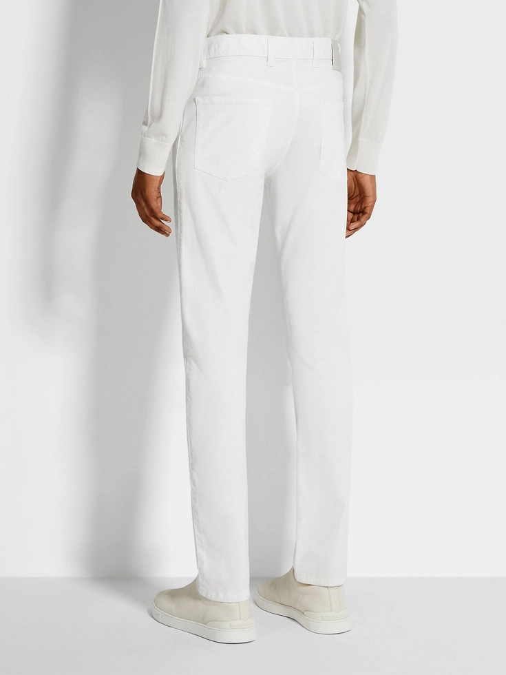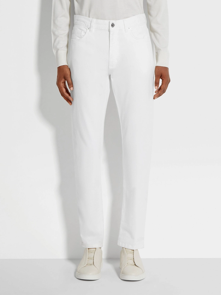 Comfortable and versatile, the white stretch cotton Roccia jeans fit right into elegant contemporary wardrobes. The slim fit elongates the legs, in line with Zegna’s vision of dynamic, contemporary menswear.ROCCIA (‘rɔt:ʃa) — ITALIAN FOR ‘ROCK’ The inspiration for the Roccia Trousers was Born in Oasi Zegna — the home of our values in the Italian Alps. Inspired by classic workwear, they’re both hardwearing and elegant, making them a reliable foundation to any look.
