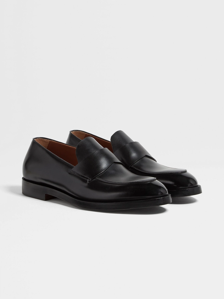 Combining elegance with contemporary flair, the black leather Torino loafers are effortlessly sophisticated. The slip-on design is crafted from calf leather and features the classic band across the uppers. The toe and heel are reinforced with rubber injections for stability.