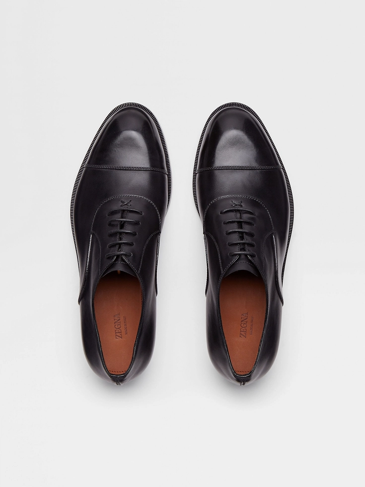Based on an artisanal construction, the last of the black leather Torino Oxford shoe is paired with a fully stitched sole. The leather is hand-buffed to grant it a deep, luminous shine, adding a final touch of sophistication for any formal occasion.