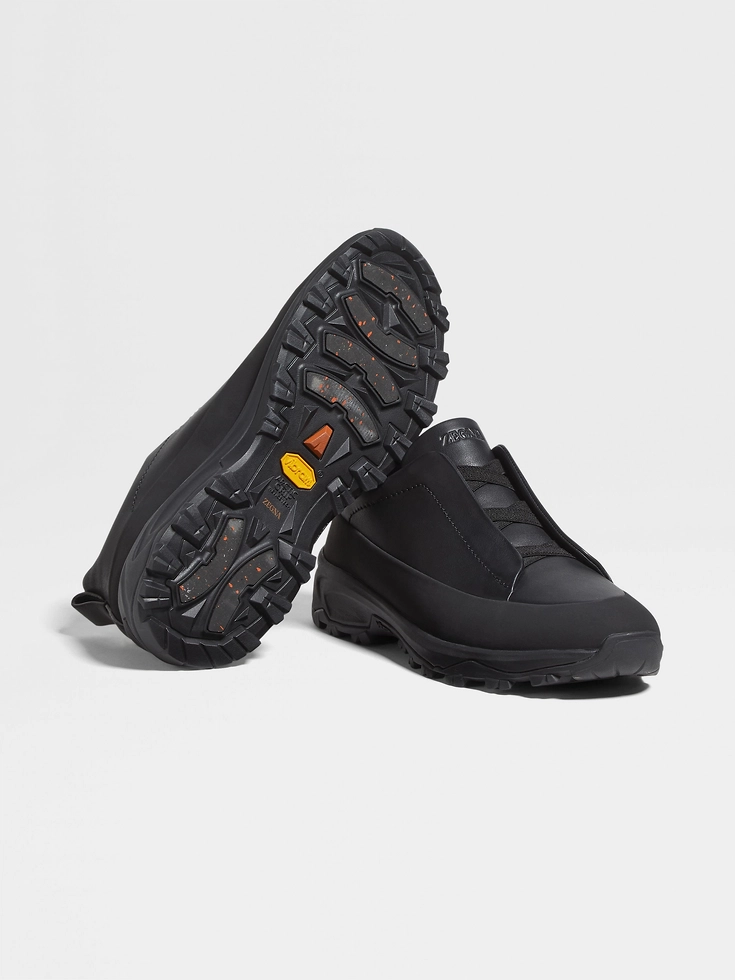• Crossed elastics• Foliage-colored leather lining• Black Vibram® Arctic Grip All Terrain advanced grip sole• Zegna 232 Road Brand Mark on the heel tab• Sanitized® removable footbed• Made in Italy• Comes with a shoe bagWe want every pair of Triple Stitch™ sneakers to fit perfectly anytime, anywhere, anyplace. To find your perfect fit, we recommend going down a half-size compared to your usual shoe size. Please note that Zegna uses UK sizing. For further information, please contact us via our customer service channels or by visiting the nearest Zegna flagship store.