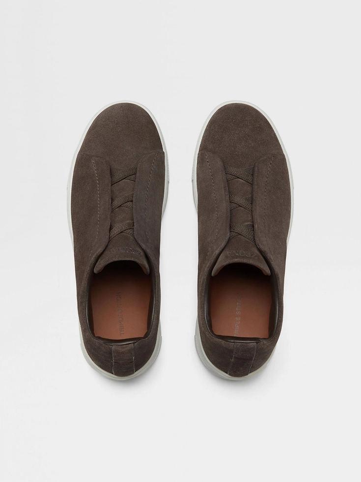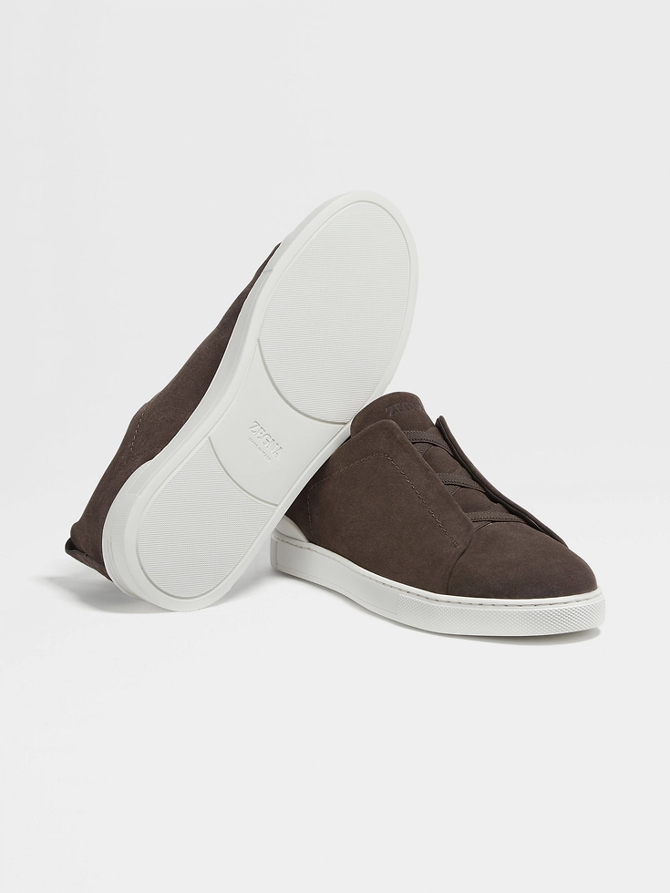 The brown suede Triple Stitch™ low-top sneakers’ construction makes them lightweight and flexible. The brand’s signature triple-crossed elastic detail ensures an easy slip-on fit, while evoking the traditional hand-stitching of tailored jackets to symbolize and honor Zegna’s legacy of fine craftsmanship. Foliage-colored leather lining completes the look.Customize these sneakers with our Made to Measure Service. For more information, please contact our Customer Care or visit your nearest stores.