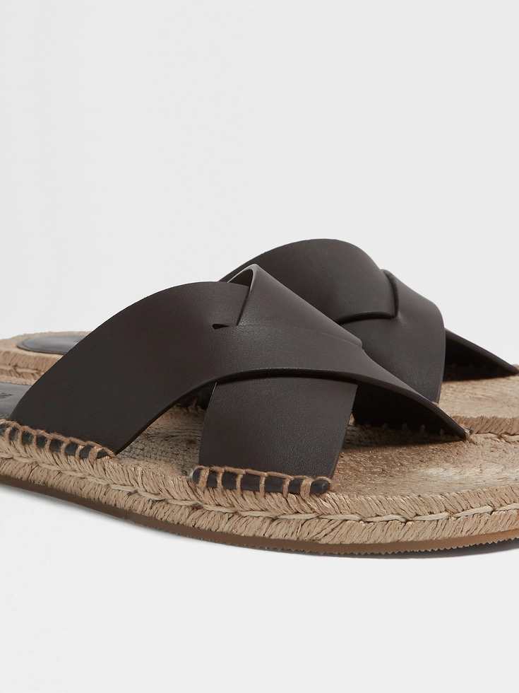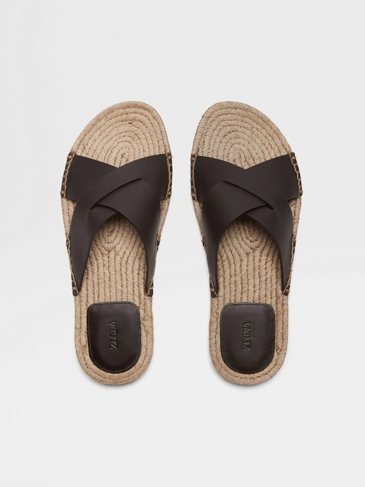 Replacing the usual canvas with luxury materials, the dark brown leather espadrille sandals exemplify Zegna’s vision of effortless elegance. Tonal lining is soft against the skin, while the roped midsole is paired with a durable rubber outsole.