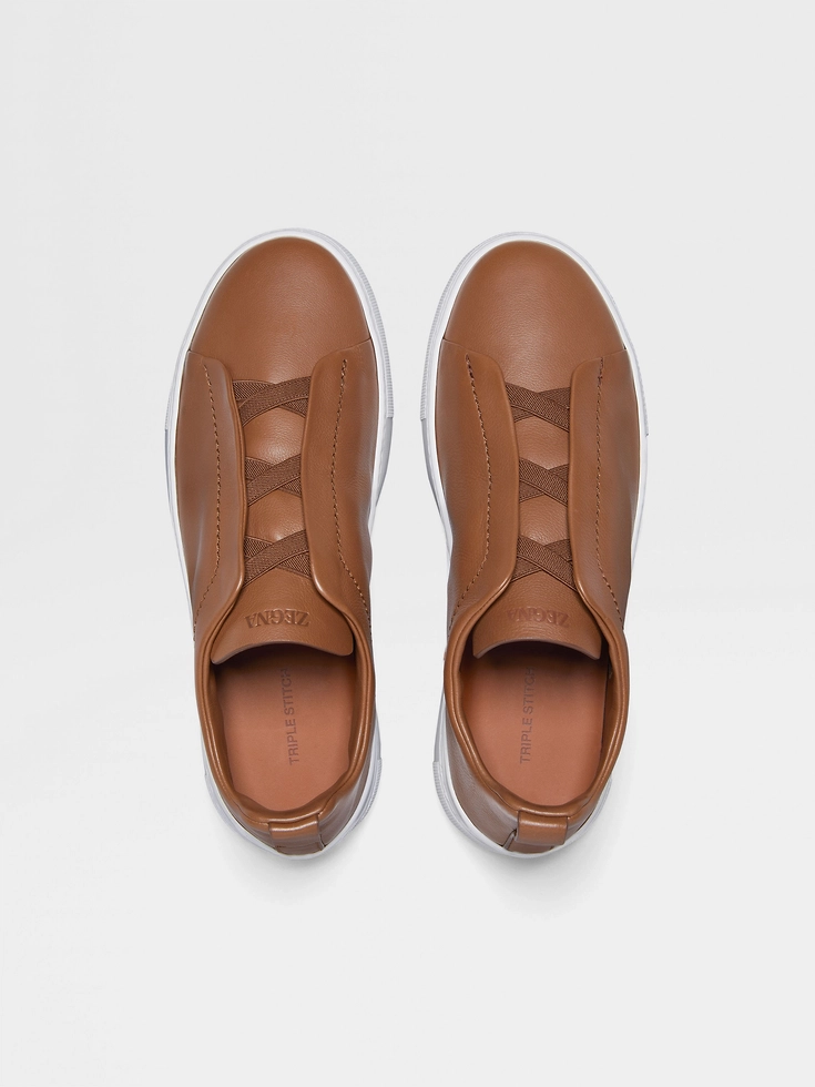 • Crossed elastics• Tonal leather lining• Sanitized® removable footbed• White rubber sole• Zegna 232 Road Brand Mark on the heel tab • Made in Italy• Comes with a shoe bagWe want every pair of Triple Stitch™ sneakers to fit perfectly anytime, anywhere, anyplace. To find your perfect fit, we recommend going down a half-size compared to your usual shoe size. Please note that Zegna uses UK sizing. For further information, please contact us via our customer service channels or by visiting the nearest Zegna flagship store.
