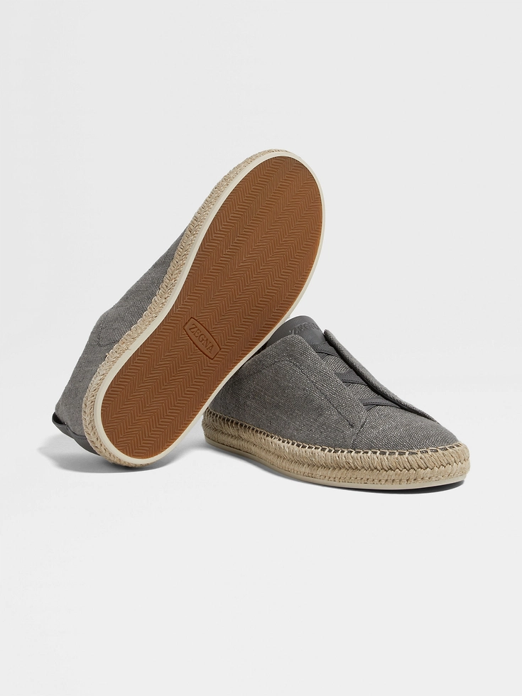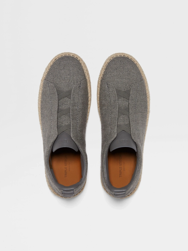 These grey mélange Triple Stitch™ espadrilles exude warm-weather elegance with their viscose-linen construction and natural rope sole. Their distinctive silhouette is elevated with the secure embrace of the ZEGNA icon’s signature triple-crossed elastics.The Triple Stitch™ Shoes are an icon of ZEGNA’s contemporary wardrobe offering. Hallmarked with a namesake trio of crosses — inspired by the handmade stitches found on our tailoring — the comfortable slip-on style is available in an array of refined materials and set on a lightweight, flexible sole.